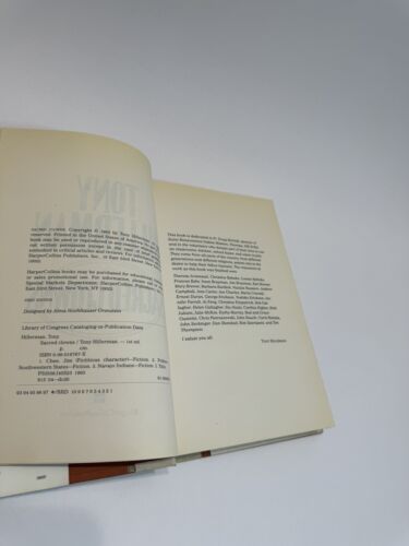 This book is a captivating mystery story by Tony Hillerman, titled "Sacred Clowns". The hardcover book, published by HarperCollins in 1993, is a first edition with 320 pages.